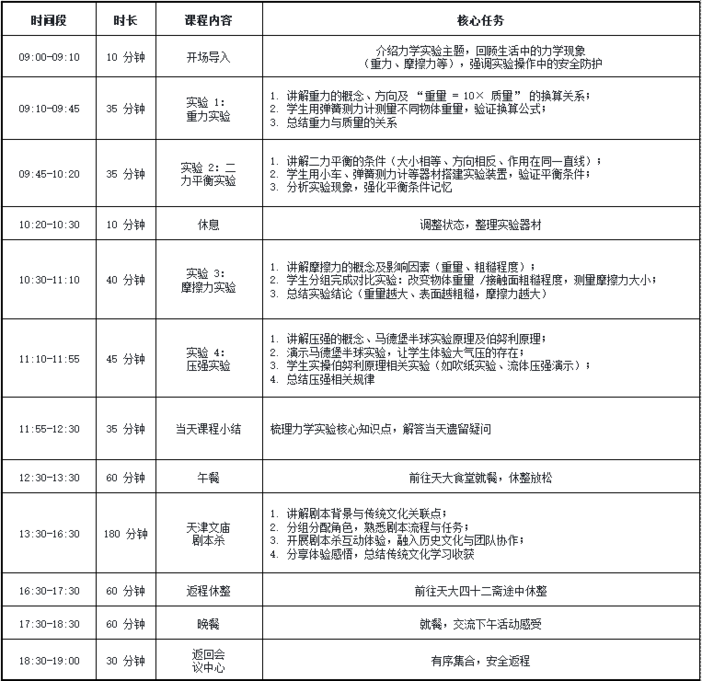 以 “力、热、光、电” 四大基础科学主题为核心,每日聚焦一个领域。