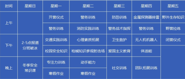 天津警察学院首次面向社会开放,6天5晚全封闭警事化管理,警院新建实训中心标准双人间住宿,三餐警院食堂,警院老师教学训练,结营授予警院证书。年龄在7-16岁均可报名,男女不限,更可参加公益志愿队接受专业讲解培训,获取证书。