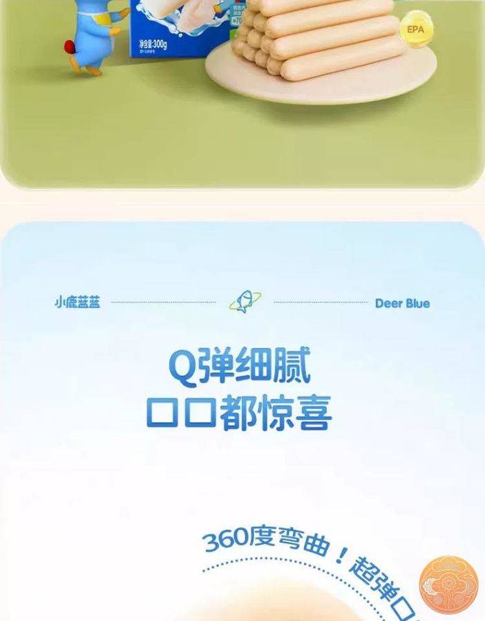 小鹿蓝蓝鳕鱼肠儿童火腿肠香肠肉肠一岁宝宝健康零食高蛋白无添加
